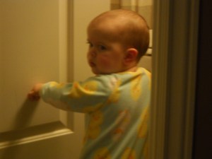 It seems that Joseph and Mary were not the only visitors searching for a room at an inn. Here’s little Evie, age 1, knocking on doors as well!