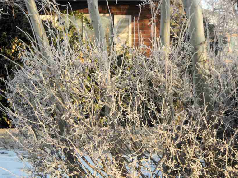 The pictures really don’t do justice to the scene of Bangerter Highway lined with frosted trees that elicited an “Ahhhh” from me. Unfortunately, I couldn’t click my CoolPix while zipping along at 60 mph, but I did pull off into a neighborhood, and, feeling rather like a snoopy private detective, I snapped these.
