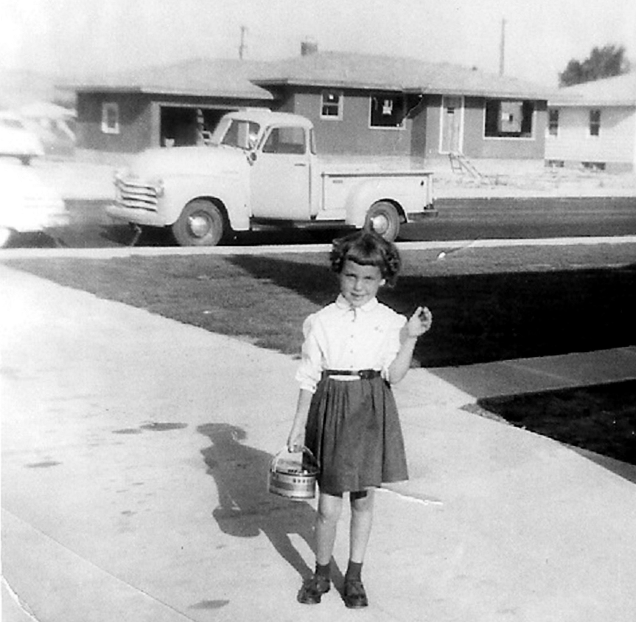 On this Saturday trip with Dad, I sport a ponytail, a suntop, and shorts of red cotton.