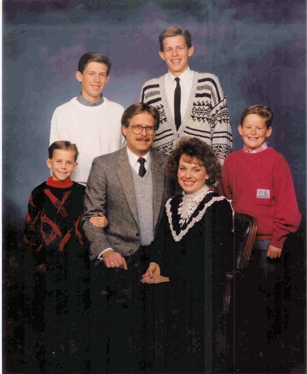 Memorial Day does bring me a HUGE dose of nostalgia, and for a person who is ALWAYS nostalgic, that is saying something. Tonight is a case in point. I decided to rummage through some boxes of old photos looking for who-knows-what, and I found all but 2 of our sort of “official” family pictures. For a long time I have wanted to post them, and decided that I’ll start off the Memorial weekend with these “happy family” photos. (Of course, we all know what goes into organizing a trip to the photographers – hence the sarcasm.) So here we go down Memorial Day Lane.
